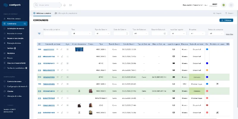 • Melhor visibilidade e rastreamento de movimentos de contêineres